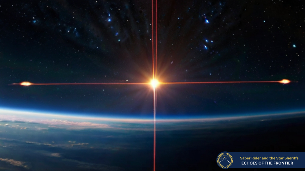 Mit unerschütterlicher Präzision steuerte Captain Hikari sein Schiff direkt in den sich auftuenden grellen Tunnel von Laserstrahlen. Die gläserne Kuppel des Mutterschiffs schien förmlich zu pulsieren und alles um das feindliche Schiff begann, die bekannten Gesetze der Physik zu ignorieren. Zeit und Raum schienen sich zu verbiegen, alles um Shinjiro dehnte sich aus und erstrahlte in einem beißenden weißen Licht, das selbst die Filter des Panoramafensters an seinen Jet kaum noch dämpfen konnten.