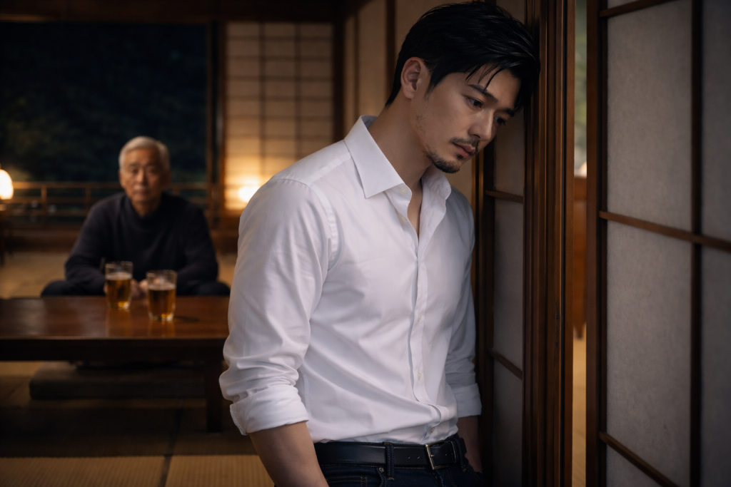 „Machst du mir Vorwürfe?“ Shinjiro griff nach seinem Glas und sagte: “Er hat gute Ansätze und Absichten, auch ein Ziel, aber er weiß nicht, wo er anfangen soll, er ist nicht er selbst, deswegen verliert er immer wieder den Überblick!” erzählte Shinjiro weiter, ohne auf die Frage seines Vaters einzugehen und leerte sein Glas.