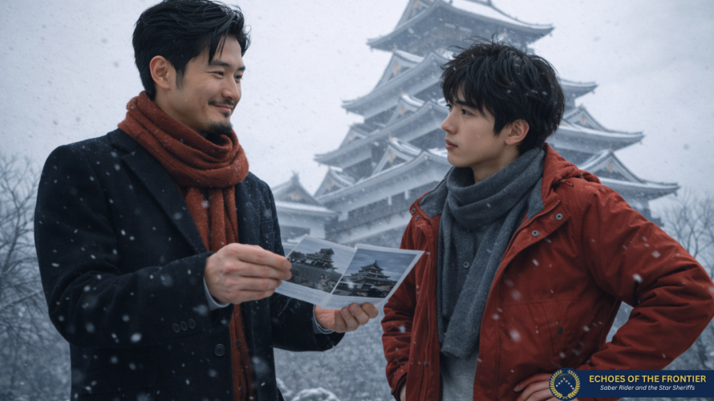 Fireball blickte während der Erzählung seines Vaters immer wieder mal zur Burg hinauf: „Woher weißt du das alles?“, fragte er schließlich und sein Vater der über jedes Detail Bescheid zu wissen schien. Shinjiro grinste seinem Sohn etwas überlegen entgegen: “Na, dass steht in dieser Broschüre, die im Ryokan auslag.” und hielt sie ihm vor die Nase. “Mhmm”, verzog Fireball das Gesicht und nahm die Broschüre über die Burg entgegen und blickte zu seinem Vater.