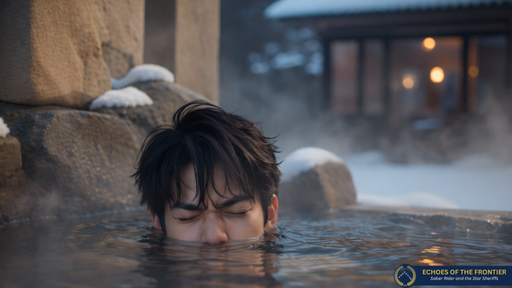 Fireball und sein Vater waren im Onsen des Royokan angekommen, nach der gründlichen Waschung entschieden sie sich in ein Außenbecken zu gehen und stiegen in das bis zu 45 Grad heiße, braune Mineralreiches Wasser. So heiß hatte es Fireball überhaupt nicht mehr in Erinnerung, aber er wollte, nein, er musste rein, denn die Außenluft war zu kalt. „Ja, hier wird man abgebrüht.” kommentierte sein Vater, Fireball nickte zustimmend, eine schöne bildliche Vorstellung fand er. Sie lehnten sich an die felsige Wand und genossen das natürliche heiße Quellwasser eine Weile.