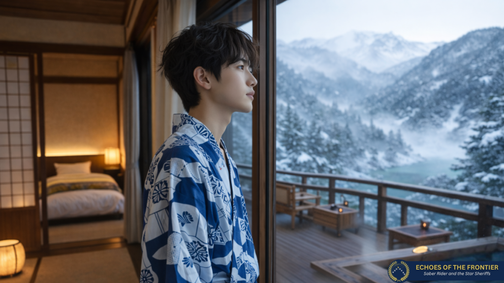 Shinjiro und Fireball erreichten das älteste Ryokan im Ort, das an einem dampfenden Fluß lag, der aus den heißen Quellen in den Bergen entsprang. Sie stiegen aus dem Auto und traten in das Gästehaus. Ein Ryokan ist ein traditionell japanisches Gasthaus, in dem man tief in die Kultur und Gastfreundschaft Japans eintauchen kann. Beim Eintreten empfing Fireball und Shinjiro der Duft von Holz und grünem Tee, was einen sofort empfangen fühlen ließ. Die glänzenden Holzböden spiegelten das sanfte Licht der Lampions, andere Gäste ließen oder saßen in ihren „Yukatas“ Kleidung, die vor allem in Ryokans als bequeme Hauskleidung dienten.