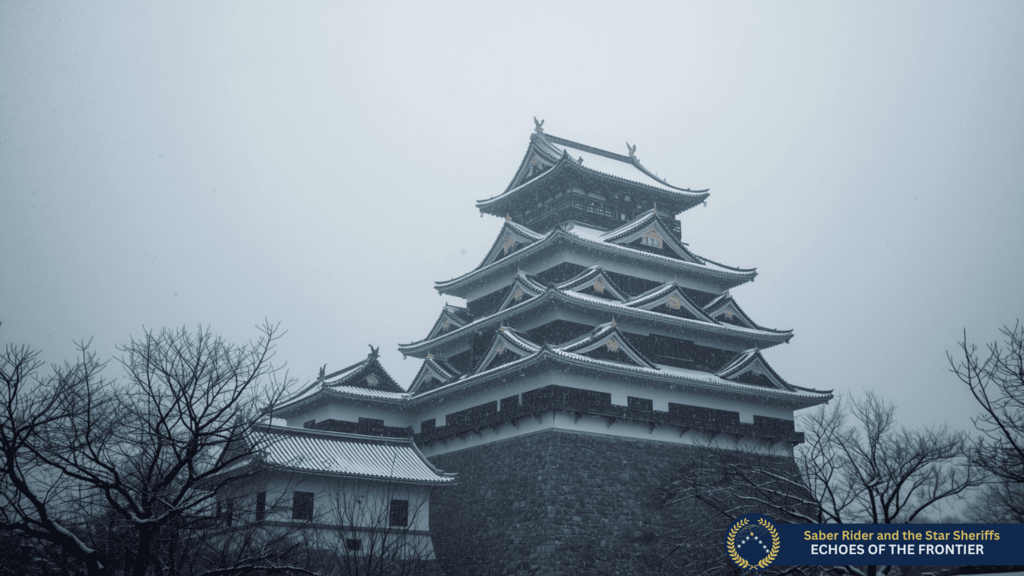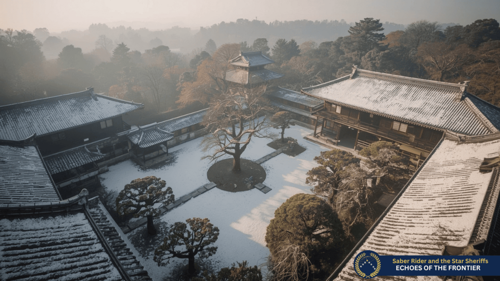 Er trat neben seinen Vater in einen sehr gepflegten Innenhof mit mehreren Gebäuden. Ein traditioneller japanischer Garten war angelegt, dieser lag zwar gerade unter einer hübschen Schneedecke, aber die einzelnen Bereiche konnte man erkennen, er sah ein Teezeremonie-Häuschen und die Engawa eine “Veranda”, die rings um die ersten Stockwerke aus Kiefernholz verlief.