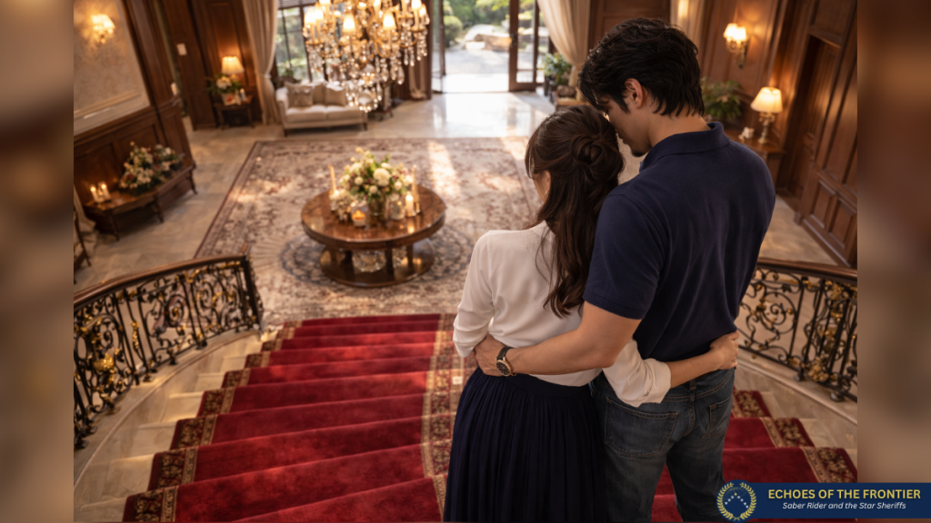 Jarreds Schritte hallten gedämpft über die dicken Teppiche, die den langen Korridor säumten. An den Wänden schimmerten dunkle Holzvertäfelungen im warmen Licht und es hingen großformatige Gemälde in schweren, vergoldeten Rahmen daran. Der Duft von frisch poliertem Holz und Leder lag in der Luft. Massive Möbel aus dunklem Nussbaum standen zwischen den hohen Fenstern, deren schwere Vorhänge aus weinrotem Samt das einfallende Licht weich filterten. Alles wirkte ruhig, gediegen und von zeitloser Eleganz, eine Villa, die Macht nicht zur Schau stellte, sondern selbstverständlich ausstrahlte.