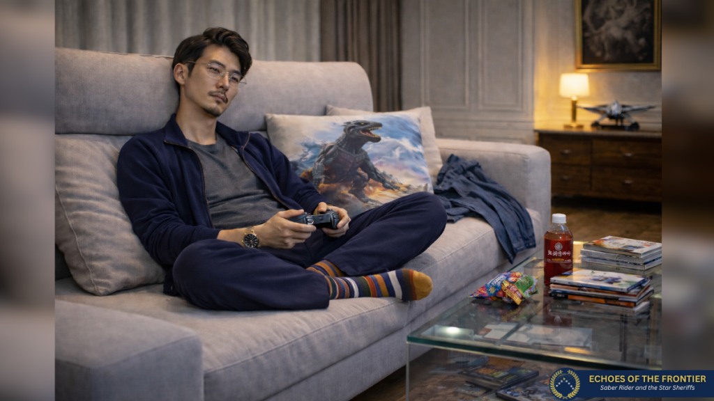 Fireball und sein Vater saßen mittlerweile auf dem Boden und unterhielten sich über General Whitehawk, es half die quälende Wartezeit über den Zustand des Generals zu überbrücken. Sein Vater, so stellte Fireball fest, hatte fast die gleichen Erfahrungen und auch Ansichten zum General. “Wer war das?” fragte Fireball. “Das wissen wir nicht … noch nicht, auf den Videobändern ist nichts zu sehen, nur ein Blitz” teilte ihm sein Vater mit, auch dieser rieb sich erneut seine Augen und sah ihn eindringlich an. “Ich möchte, dass du ab jetzt tust, was wir dir sagen!” Fireball nickte seinem Vater zu, er wusste, er selbst war auch in Gefahr, nachdem er alles erfahren hatte. “Ich werde mich aber nicht vor Angst verkriechen, denn die habe ich nicht!” sagte Fireball bestimmend und stand auf und ging zu dem zerfledderten Buch, welches vorhin unliebsam gegen die Wand geflogen war. Shinjiro stand nun ebenfalls auf und beobachtete seinen Sohn, wie dieser das Buch aufhob und die gebundenen Seiten wieder ordnete und in dessen Umschlag brachte. “Ich weiß, dass du keine Angst hast!” sagte er und trat an den Schreibtisch seines Sohnes, auf dem das blanke Chaos herrschte, von leeren Getränkeflaschen, bis Süßkram und vereinzelte Blätter, lag alles darauf. Fireball stellte dabei das Buch wieder ins Regal zurück und hob darauf auch einige Konsolenspiele auf, da fiel ihm ein Retro Game in die Hände und drehte sich zu seinem Vater: “Kennst du das?” fragte er und hielt seinem Vater die Hülle entgegen. Shinjiro sah auf und ging zu seinem Sohn, er nahm die Hülle. “Danger Zone – Ace Combat 7” las er. “Top Gun!“, sagte er. Fireball nickte: “Ja, das Spiel habe ich auf dem Dachboden bei Großvater gefunden.” erklärte er und Shinjiro sah seinen Sohn fragend an und gab es seinen Sohn zurück und hatte vor, das Zimmer zu verlassen.